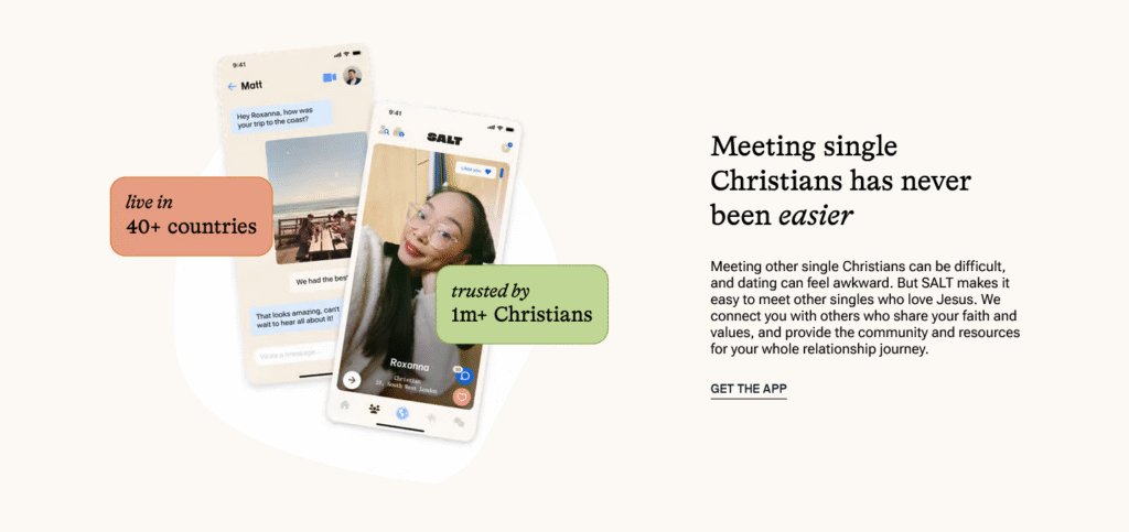 While Salt boasts a presence in 40 countries and over 1 million active users, Christian singles in more rural areas may still find it challenging to discover potential matches—other than, perhaps, Biff the local mailman (insert cringe face!). But all jokes aside, there’s hope: new users join Salt every single day, so it’s only a matter of time before you find the right connection.